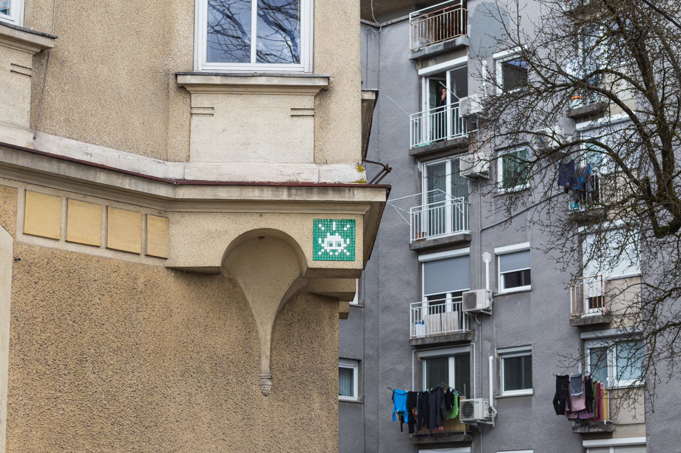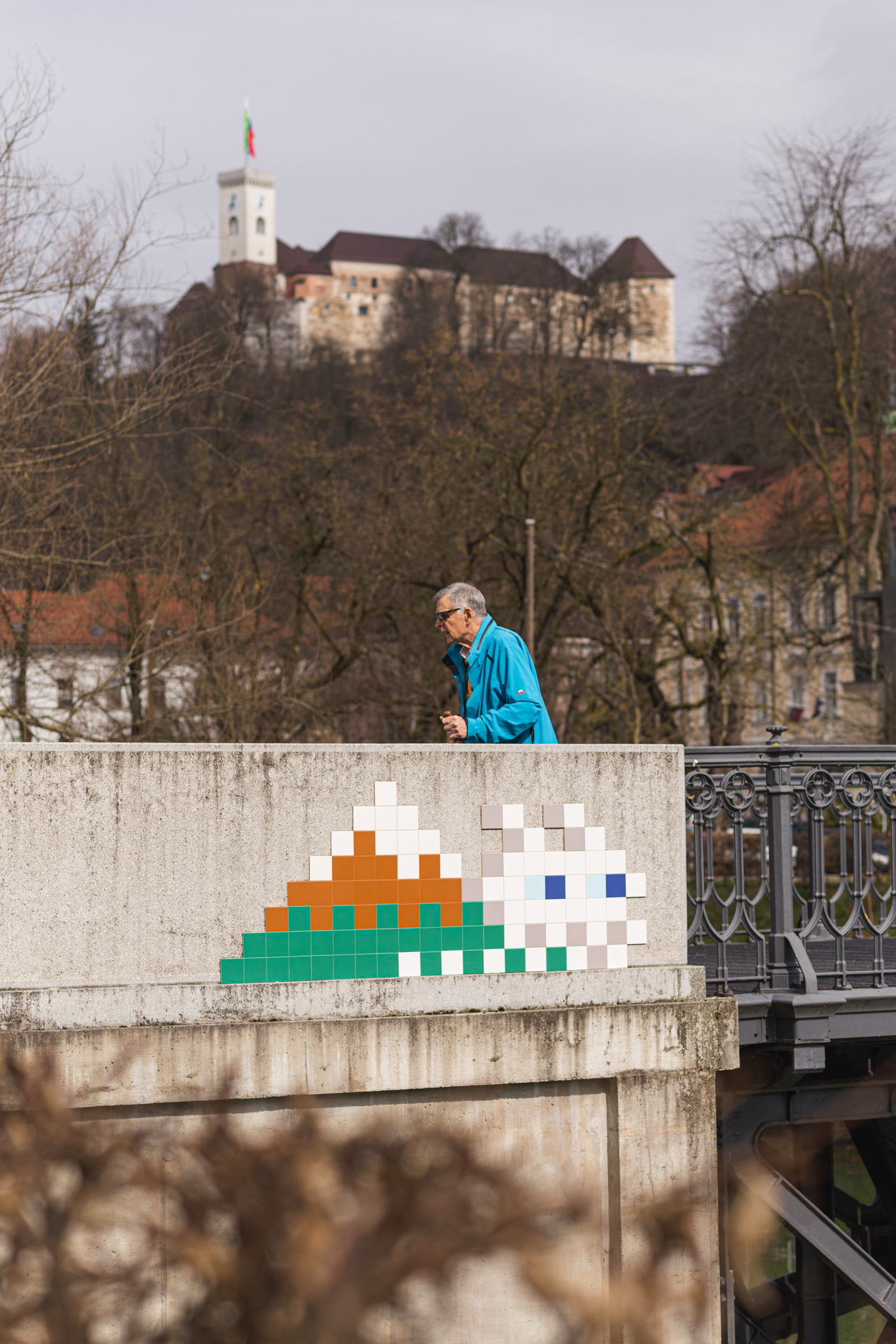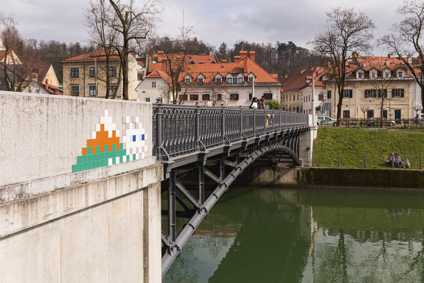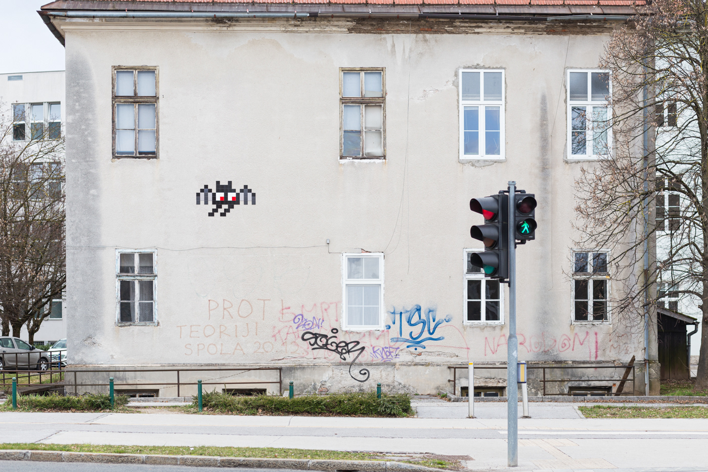 Second invasion of french artist Invader in Ljubljana, Slovenia.