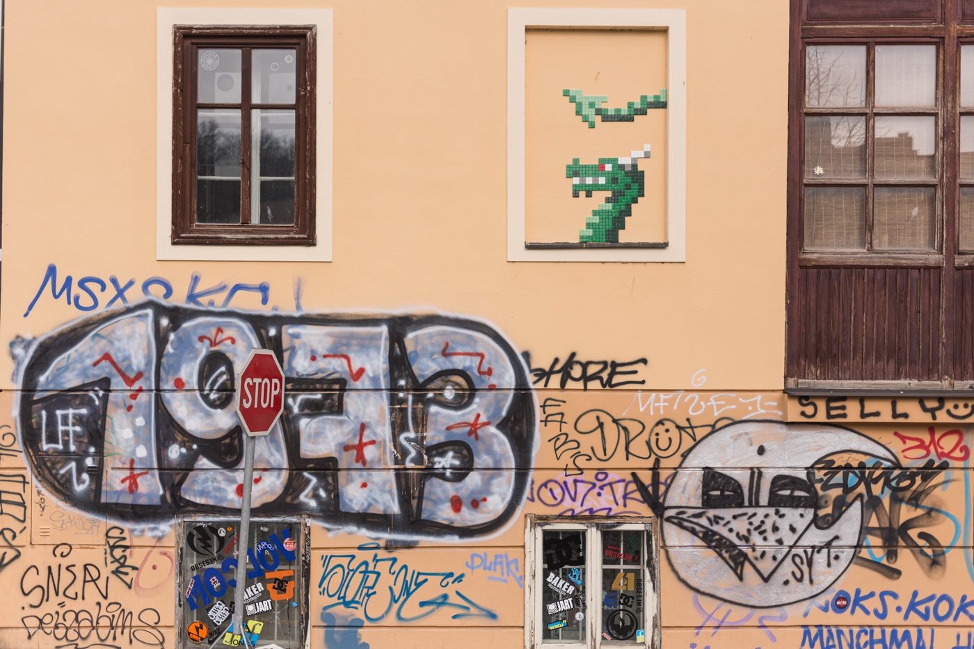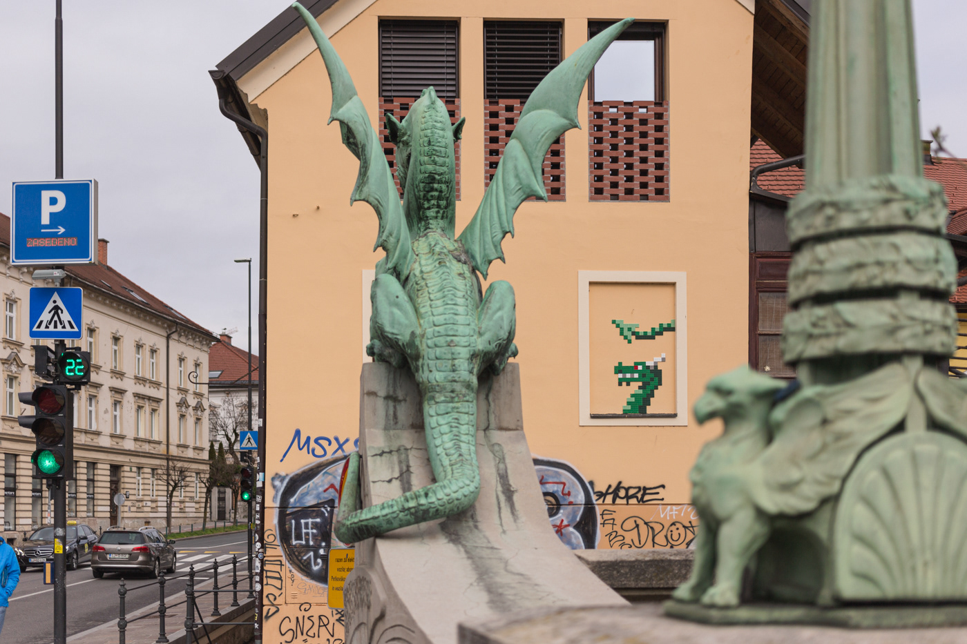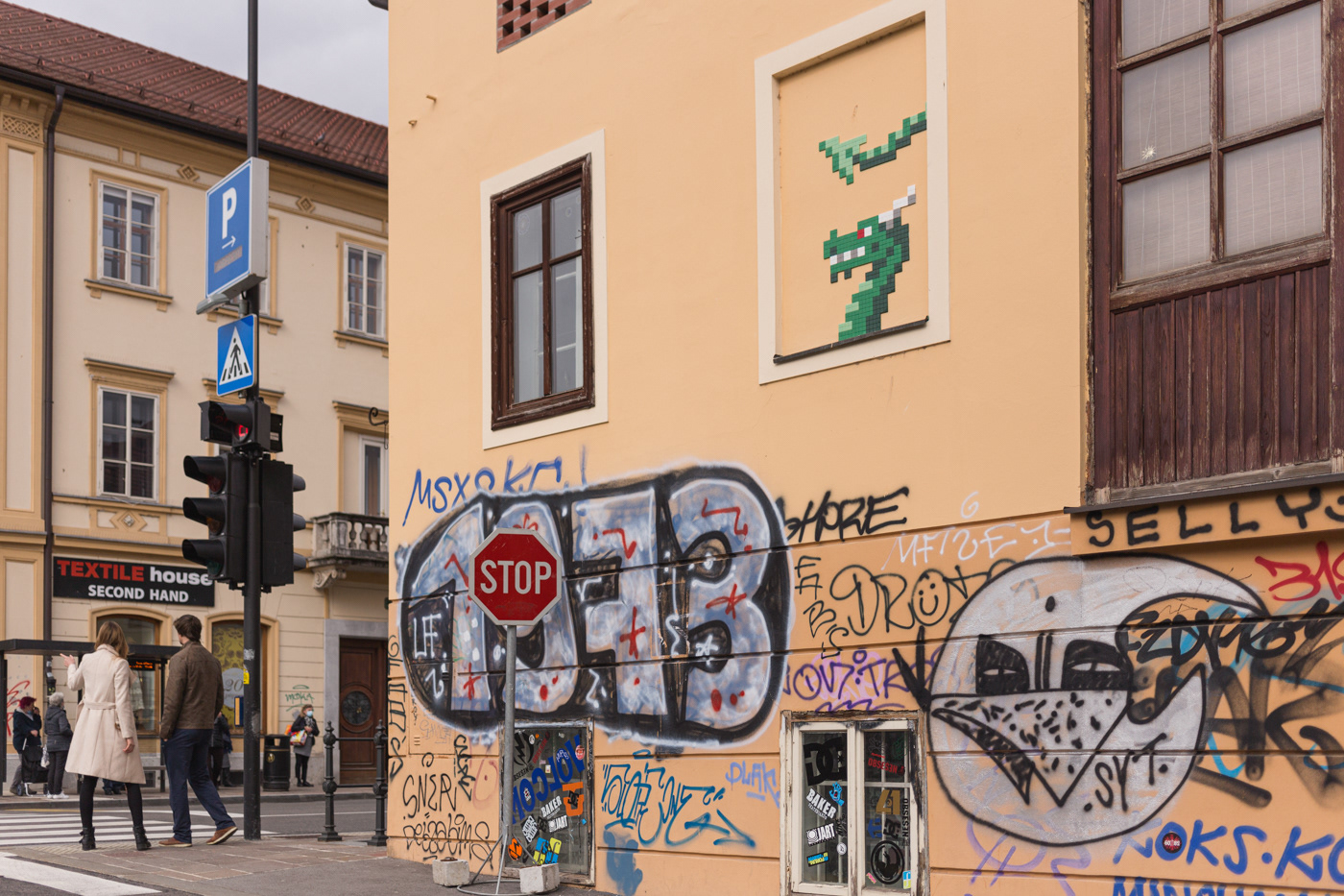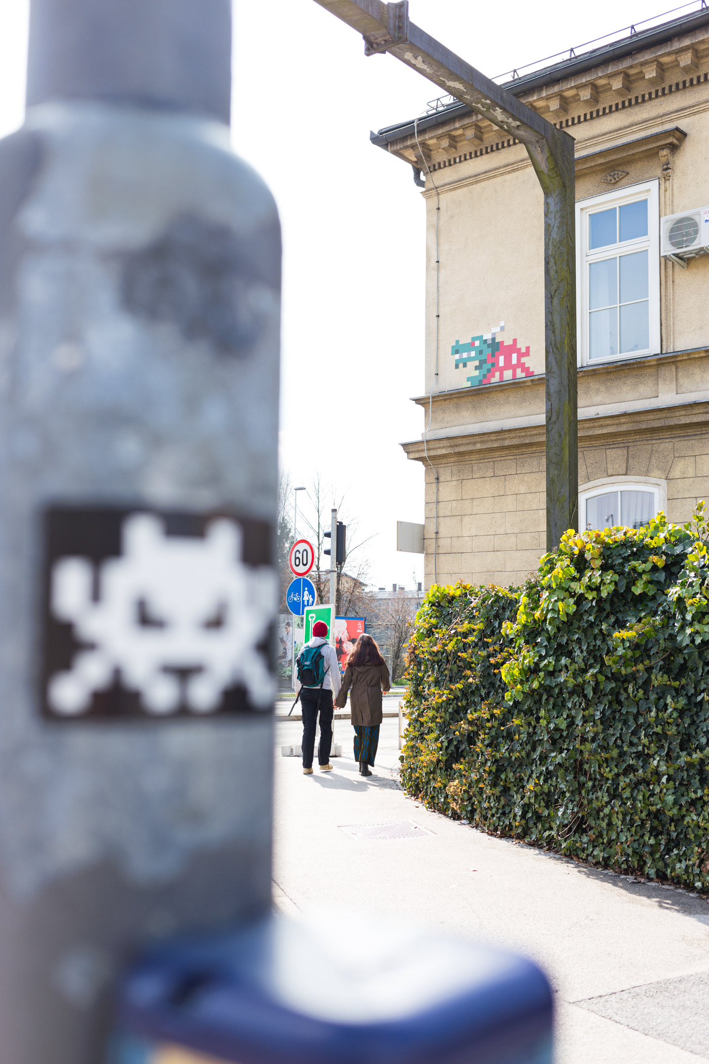 Second invasion of french artist Invader in Ljubljana, Slovenia.